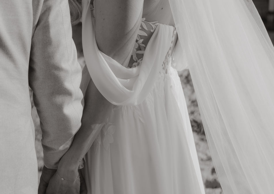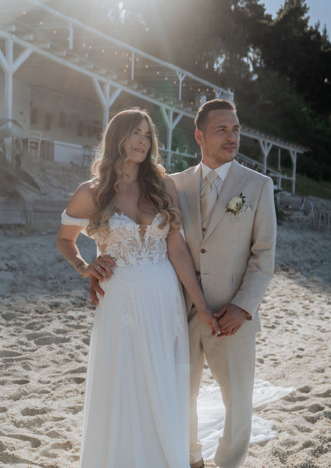 Ihr Kleid von Enzoani unterstrich mit seiner zeitlosen Eleganz die Atmosphäre des Tages – ein Design, das Schönheit und Leichtigkeit vereinte und perfekt zu dieser intimen Strandhochzeit passte. Die feinen Details der Papeterie, liebevoll gestaltet von Lin Oh Studio, unterstrichen den persönlichen Charakter dieses Tages.